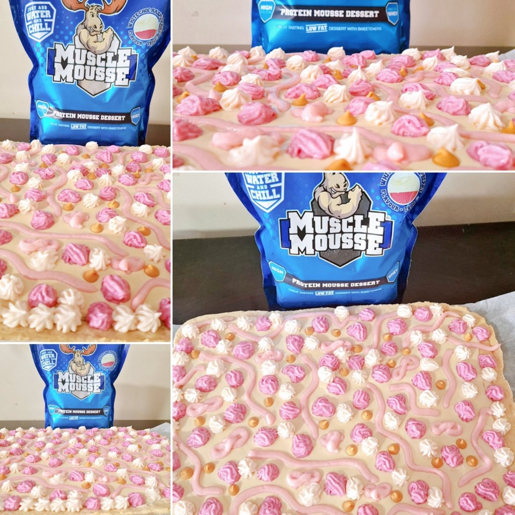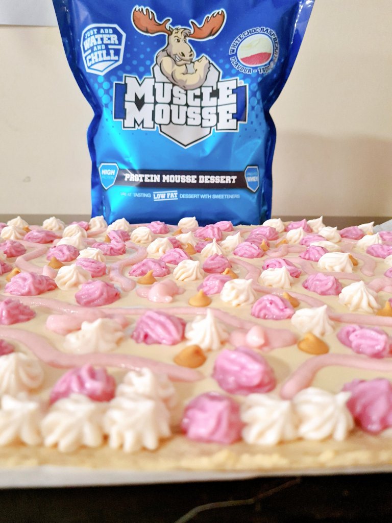 Once the base is fully cooled pour the chocolate mixture over it and spread until a small crust remains around the entire pizza base.