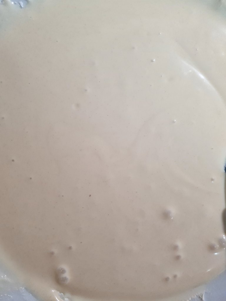 Empty bag 7 into the melted mixture and mix through till smooth.